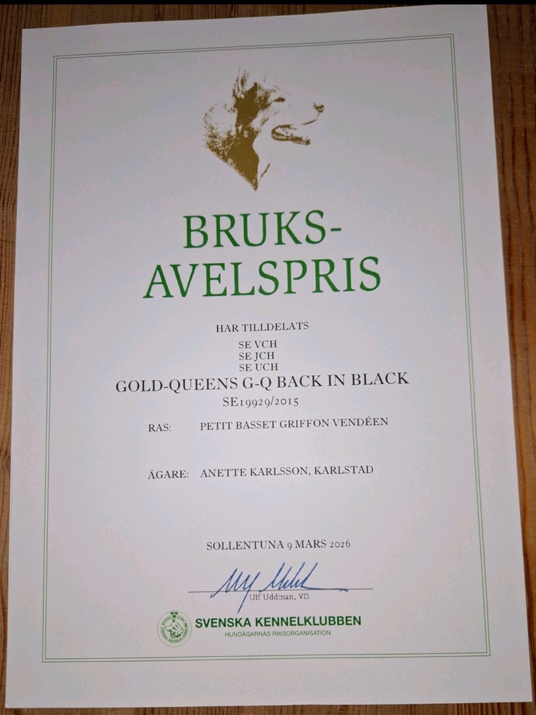 Grattis säger vi till Inge Hansen på Väntans kennel