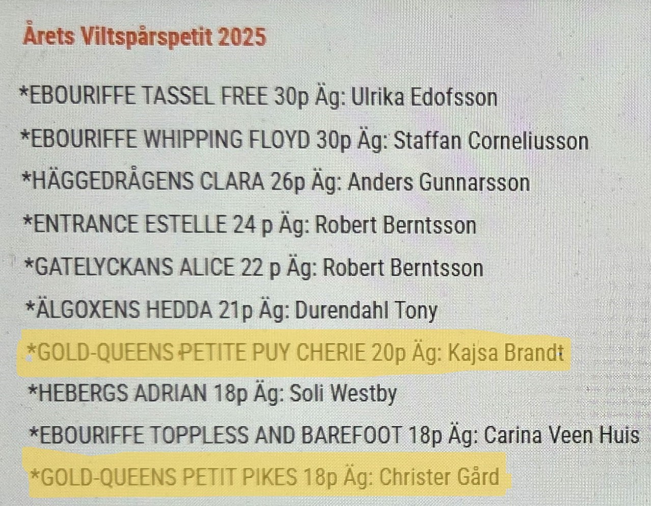 Till Kajsa och Polly som ev har chans att komma med som reserv till Petit-klubbens Viltspår-SM